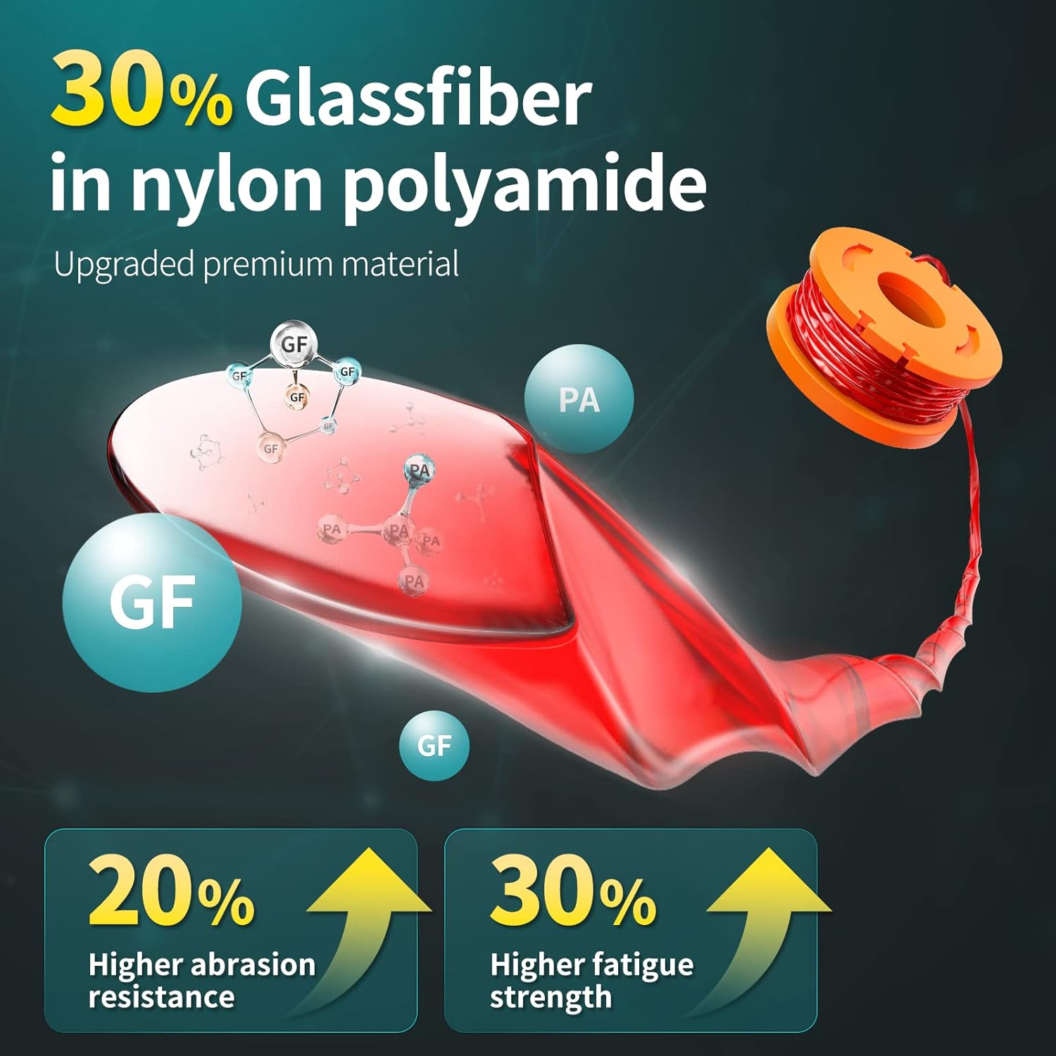 Abrasion Resistant: The trimmer line is made of improved nylon polyamide material with a tensile strength of over 100 lb, which is 30% more durable than other brands and lasts longer