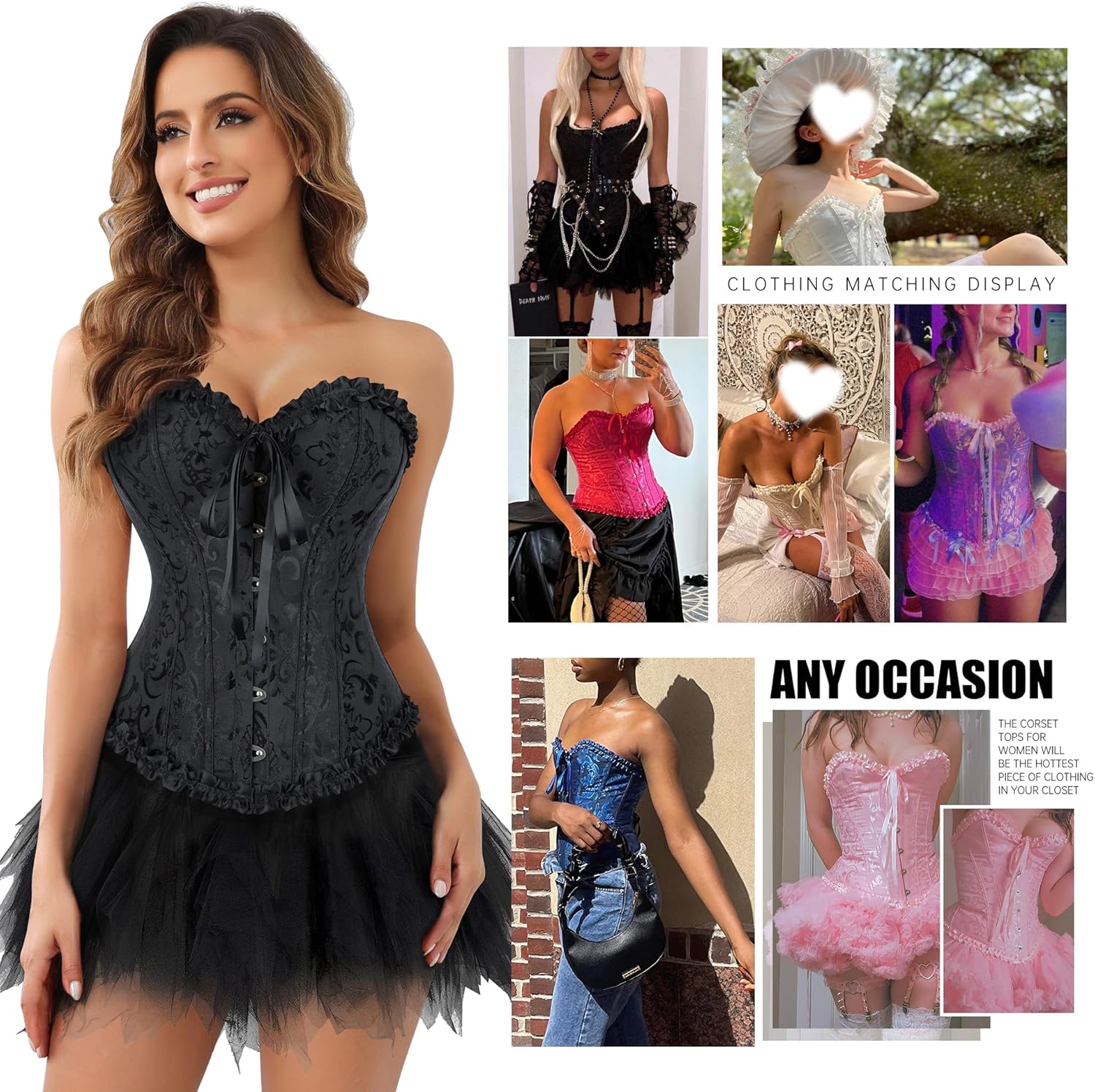 frawirshau Women’s Lace Up Boned Overbust Corset Bustier Lingerie Bodyshaper Top
