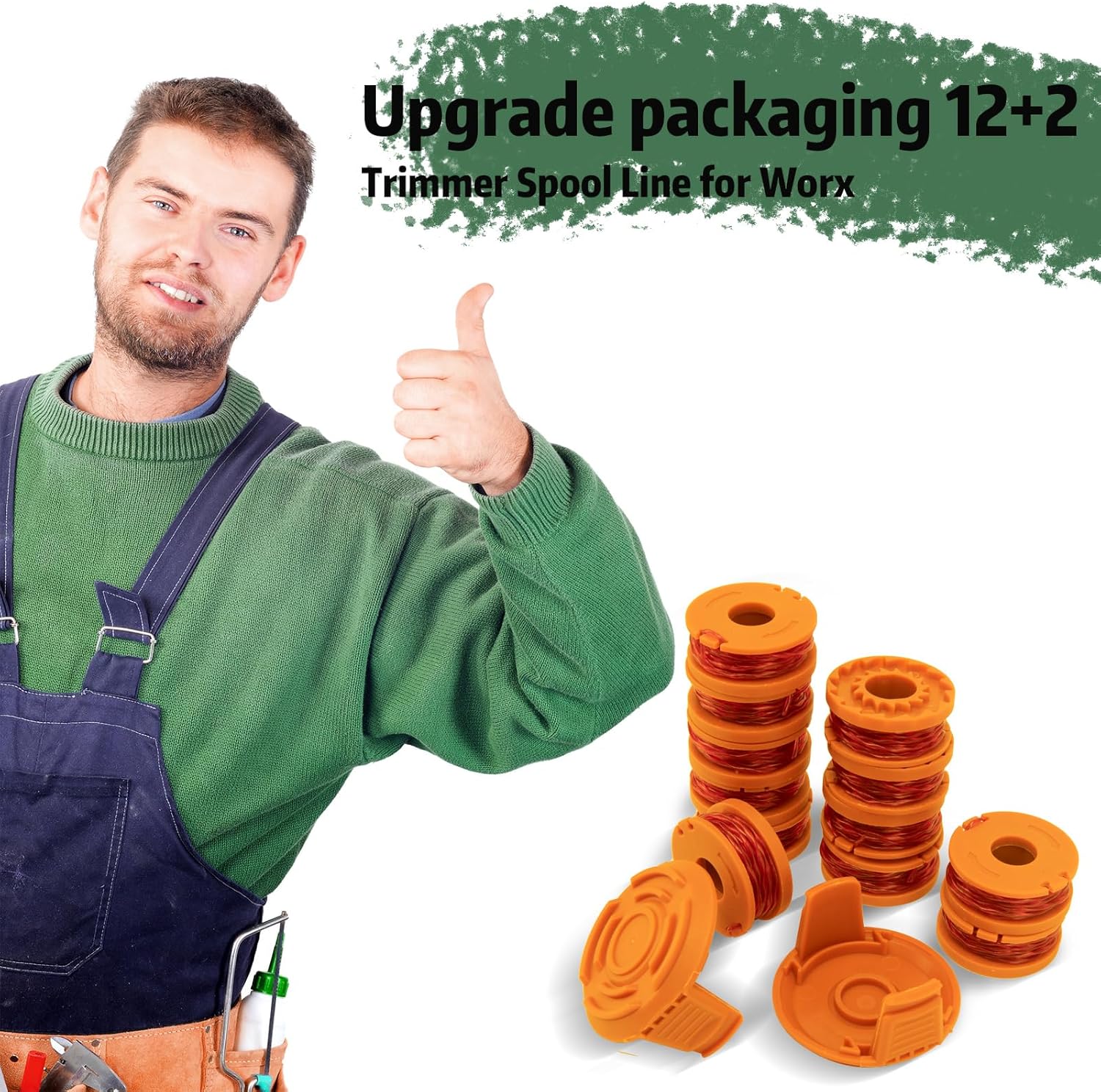 5️⃣ Package Included: 12x replacement trimmer line spool for Worx trimmer; 2x replacement cap